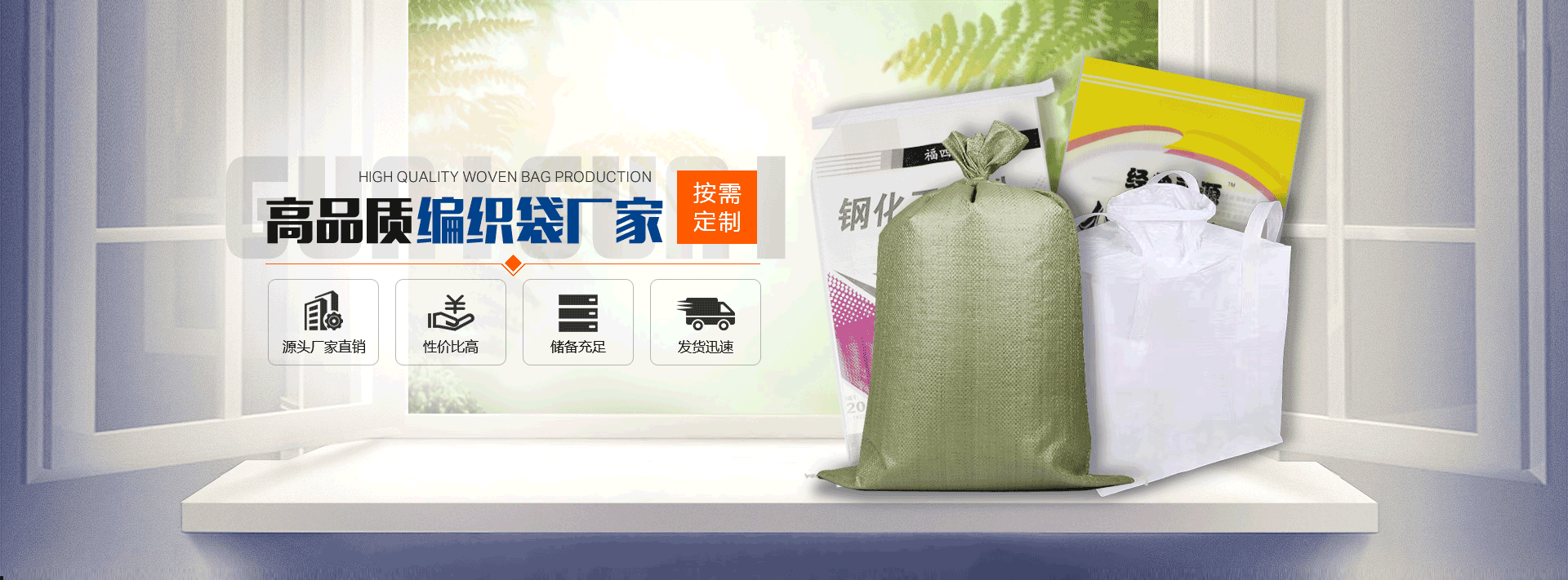 公司生產(chǎn)集裝袋,編織袋,噸袋,噸包,飼料袋,食品袋,軟包裝袋,軟托盤,塑料編織袋等一系列產(chǎn)品,方便大家選購(gòu)。